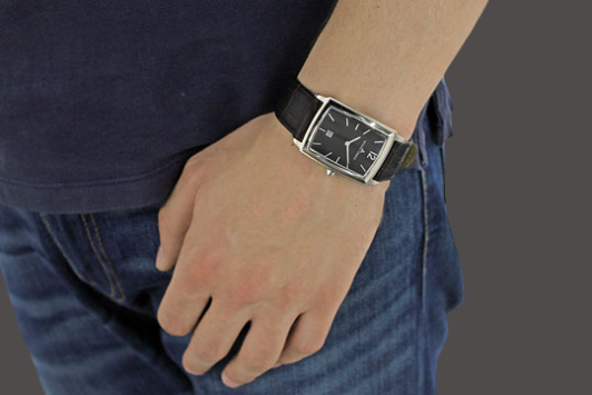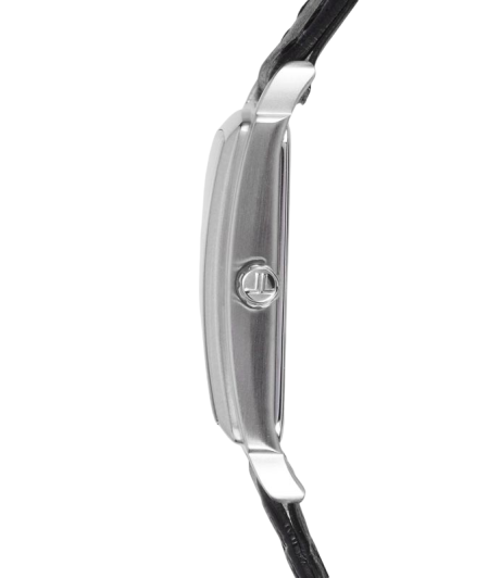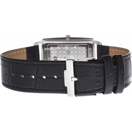 Сердцем этих часов является прямоугольный корпус, выполненный из высококачественной нержавеющей стали. Его строгие и четкие линии придают часам современный и уверенный вид. Благородный блеск стали идеально сочетается с черным кожаным ремешком, который обеспечивает комфортную посадку на запястье и подчеркивает классический стиль.