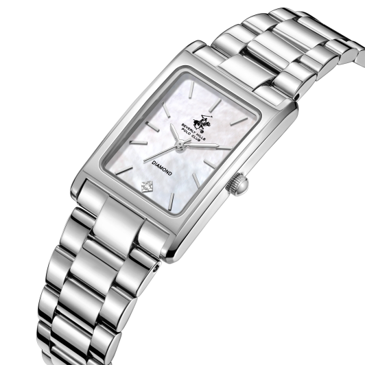 Корпус и браслет часов, выполненные из высококачественной нержавеющей стали, гарантируют долговечность и надежность. Этот прочный материал устойчив к коррозии и сохраняет свой привлекательный вид на протяжении многих лет. Прямоугольная форма корпуса размером 22,5х34,5 мм идеально подходит для женского запястья, добавляя ему изящества и элегантности.