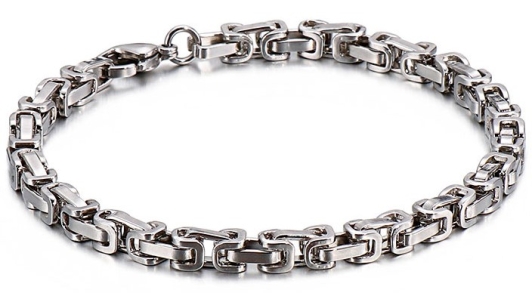 Браслет выполнен в элегантном коробчатом плетении, состоящем из звеньев прямоугольной формы. Это плетение отличается своей четкой геометрией, массивностью и надежностью. Коробчатая структура звеньев придает браслету визуальную плотность и мужественный вид, подчеркивая его долговечность.