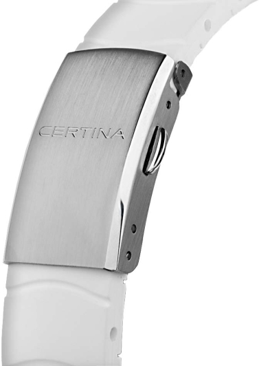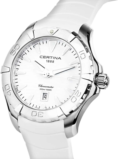 Швейцарские кварцевые часы Certina DS Action Lady C032.251.17.011.00 на каучуковом браслете идеально сядут на женское запястье и прекрасно дополнят любой образ. Элегантное признание в любви к морской стихии: тонкий декор в виде волн придает циферблату этих часов неповторимый характер, напоминая о вечном очаровании океана.