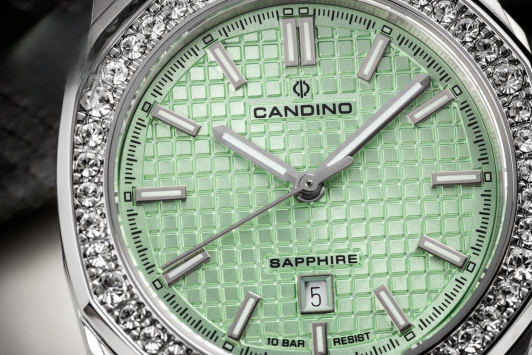 - светло-зеленый циферблат с геометрическим паттерном;