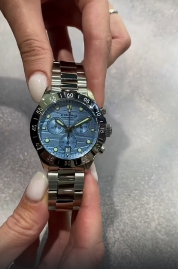 - голубой циферблат с часовыми метками в виде штрихов и точек;