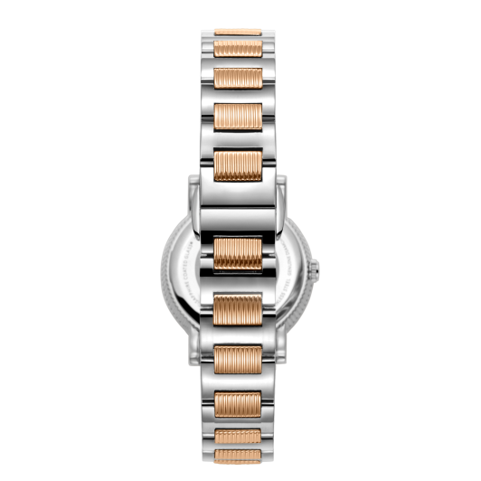 Корпус и браслет часов, выполненные из прочной нержавеющей стали, гарантируют долговечность и надежность. Частичное IP-покрытие цвета розового золота придает часам неповторимый шарм и женственность, делая их невероятно привлекательными и современными. Этот теплый оттенок идеально сочетается с любым нарядом, добавляя изысканности и роскоши. Минималистичный дизайн циферблата подчеркивает лаконичность и безупречный стиль этих часов.
