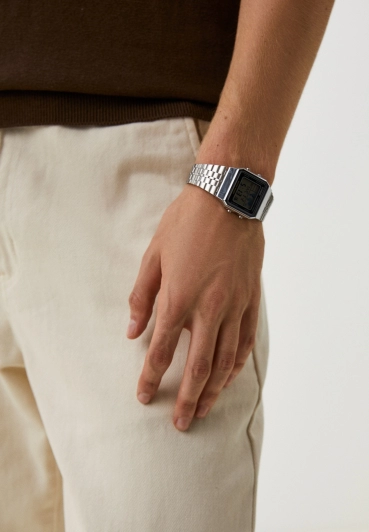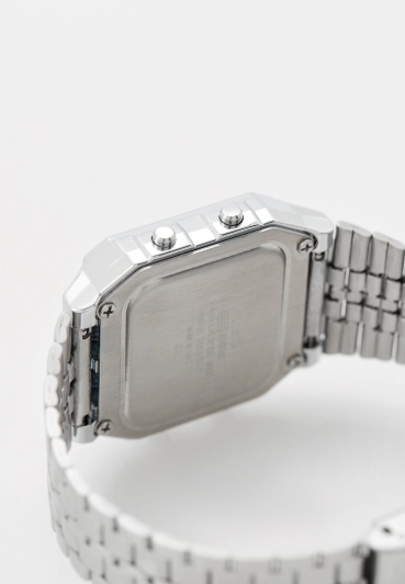 Браслет из нержавеющей стали, дополненный прочным пластиковым стеклом, который защищает многофункциональный цифровой электронный дисплей и создает неповторимый образ. Раскладная застежка с фиксатором гарантирует надежность и комфорт при ношении. Водозащита 3 бар (30 метров) позволяет не беспокоиться о случайных брызгах.
