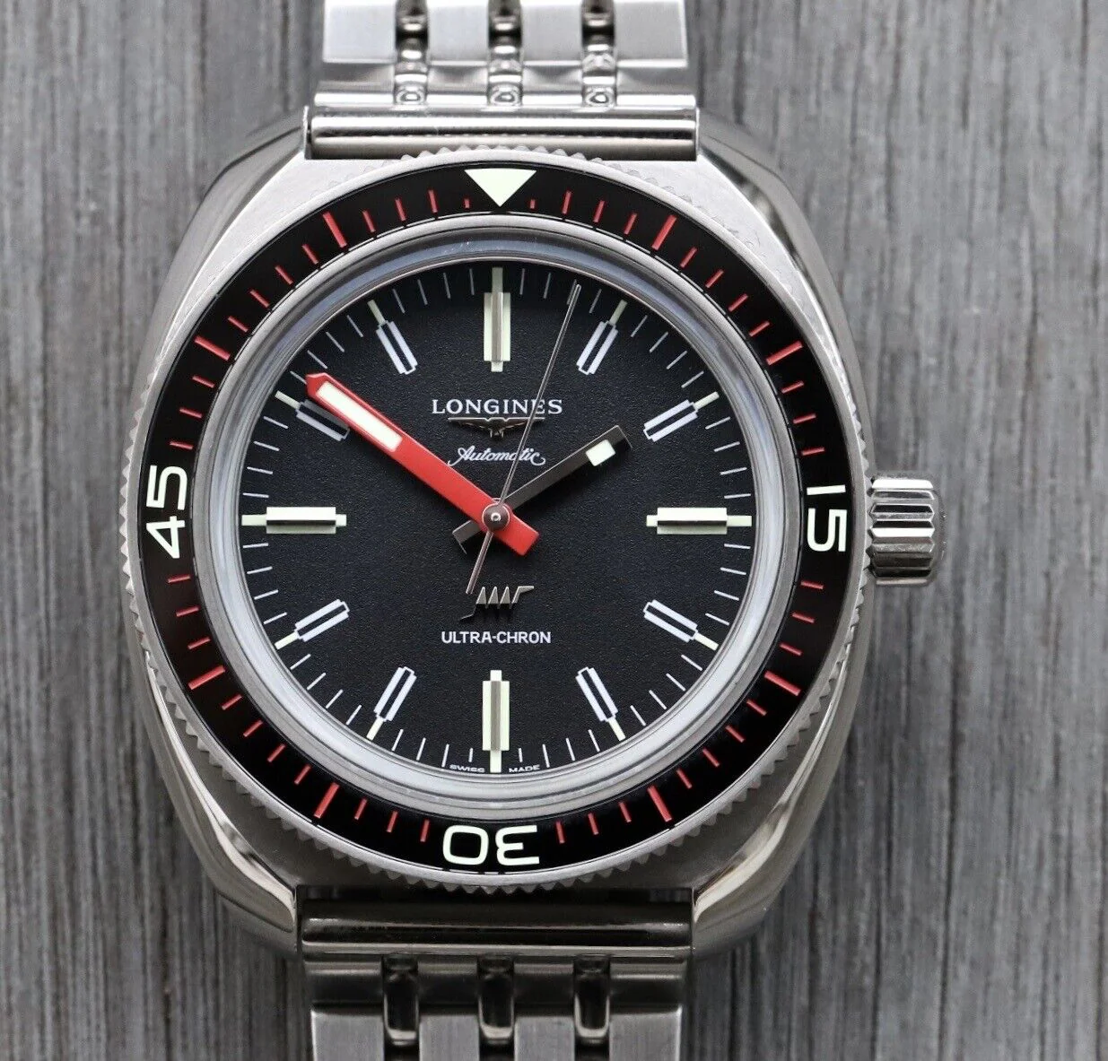 Швейцарские часы Longines Heritage Ultra-Chron L2.836.4.52.9, созданные для мужчин, отдают дань памяти модели 1968 года, предназначенной для профессиональных дайверов, и используют ее технические особенности. В 1968 году компания Longines выпустила модель Ultra-Chron Diver ‒ первые часы для дайвинга, оснащенные высокочастотным механизмом. Современные часы с сертификатом хронометра COSC оснащены эксклюзивным калибром Longines с кремниевой спиралью баланса, устойчивым к воздействию магнитных полей.