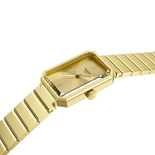 - прямоугольный стальной корпус с PVD покрытием цвета лимонного золота;