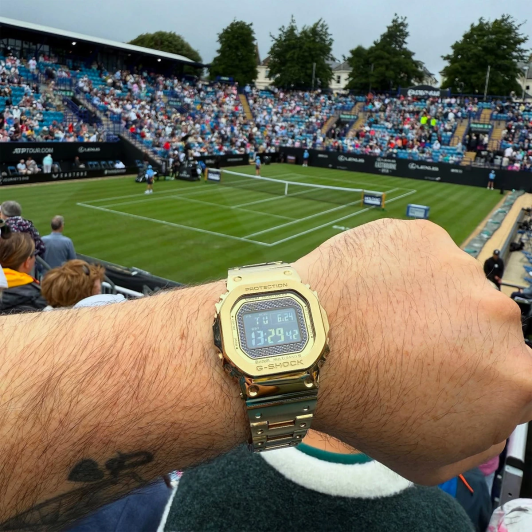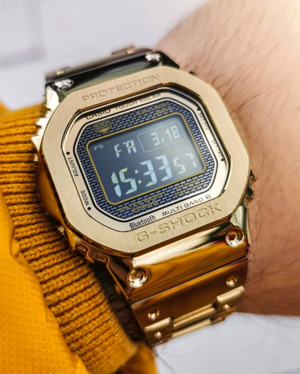Противоударные кварцевые мужские наручные часы Casio GMW-B5000GD-9 коллекции G-Shock с технологией Bluetooth® и радиоконтролем точного времени. На корпус и браслет нанесено стойкое PVD покрытие.