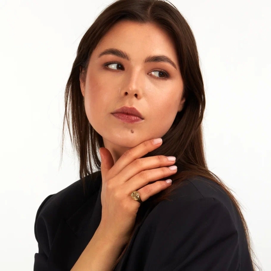 Актуальный дизайн, который сочетает в себе классические и современные элементы, делает это кольцо универсальным аксессуаром, подходящим как для повседневной носки, так и для особых случаев.